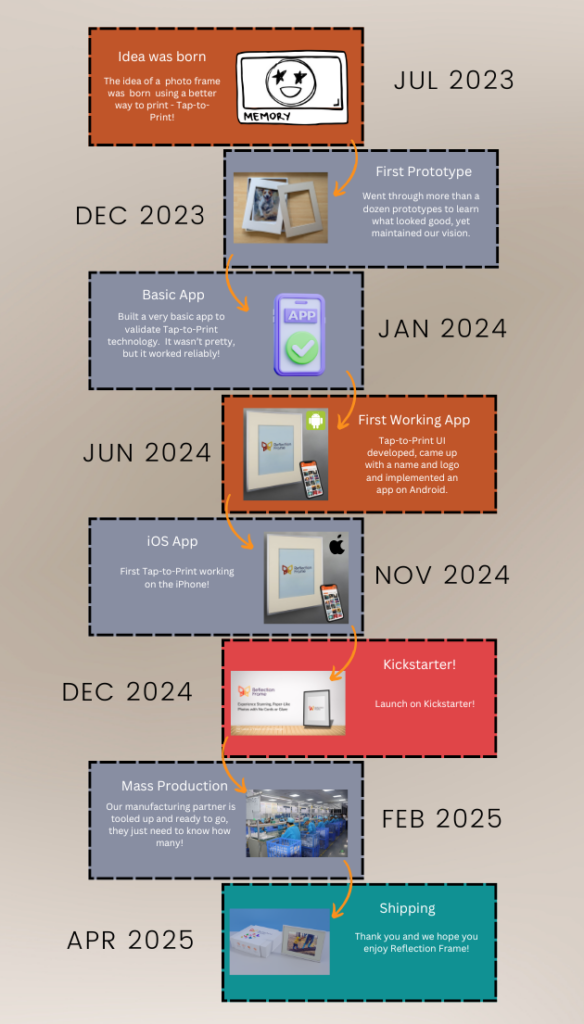 „Reflection Frame“ gimė būtent iš šios frustracijos: kodėl nuotrauka namuose negali atrodyti kaip ant popieriaus? Įmonė kreipėsi į Kickstarter su idėja įrodyti, kad žmonės nori ramesnės, spaudinio tipo alternatyvos.